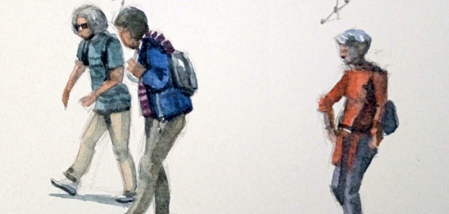 Spesso, mentre dipingo un paesaggio, mi trovo a chiedermi se sia il caso di inserire delle figure umane. La presenza di una figura, sia essa in movimento o statica, cambia completamente il significato dell’immagine che sto creando. Senza figure, il paesaggio puro e semplice evoca in me una sensazione di meditazione e contemplazione, oppure...
